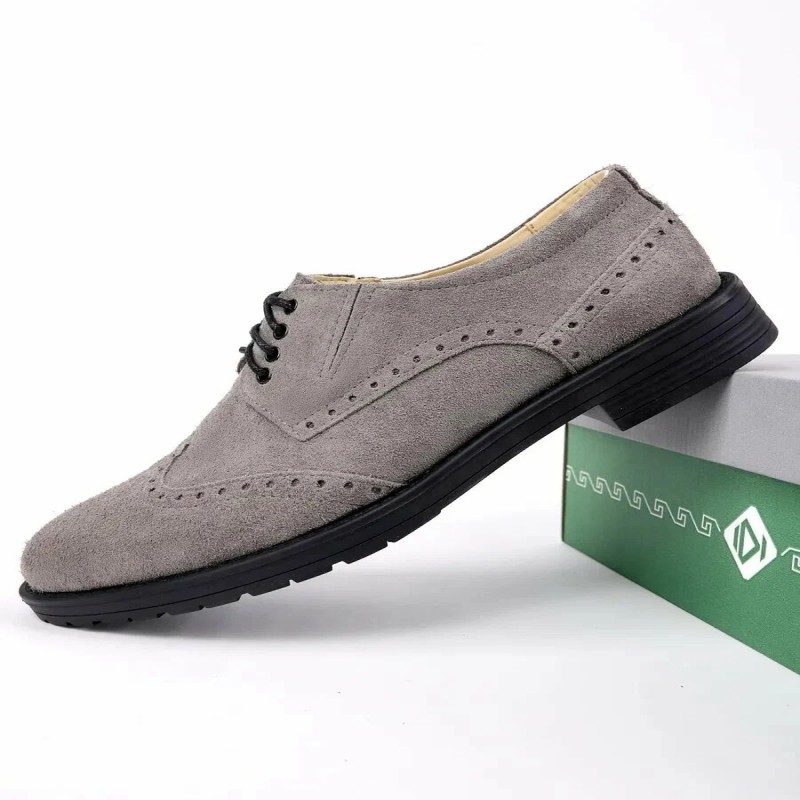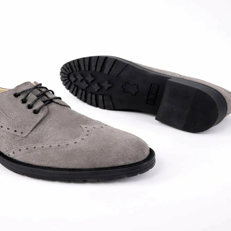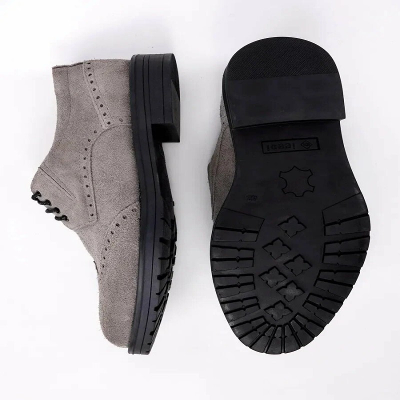 Мужские кожаные туфли от IERDI с облегченной подошвой и натуральной замши – классический выбор стильного мужчины. Вживую цвет натуральной замши может отличаться от фото. Натуральная замша, устойчивый каблук и качественная легкая подошва делают эту обувь идеальной для любой ситуации: она отлично подойдет как для офиса, так и для прогулок в парке. Пара мужских оксфордов на классическом каблуке насыщенного серого цвета – идеальный как для повседневной носки так и отличный выбор для свадебной церемонии, выпускного вечера или любого другого праздничного мероприятия. Они настолько универсальны, что подойдут как для сменки в школе, так и для вечеринок в университете. Каблук туфель-лодочек устойчивый и низкий – отличное решение для повседневной носки и танцев. Небольшая платформа добавит роста и уверенности в себе. Классические офисные туфли IERDI на шнурках с закрытой пяткой – неотъемлемый элемент делового гардероба успешного мужчины, который предпочитает классику в гардеробе. Они смотрятся стильно и элегантно, а благодаря удобной облегченной подошве вы не устанете даже после длительной носки. \nПриобретая мужские замшевые полуботинки, вы получаете не только качественную и комфортную обувь, но и модный и стильный аксессуар. Они отлично сочетаются с джинсами, брюками и спортивной одеждой, делая ваш образ завершенным и уникальным. Сделайте свой выбор сегодня и наслаждайтесь комфортом и стилем. Коллекция обуви для мужчин, молодых людей и подростков изготавливается из высококачественных материалов. \nДля того, чтобы ваша замшевая обувь прослужила долго, не забывайте о правильном уходе: используйте водооталкивающий спрей для замши и нубука, а также специальную щеточку от бренда IERDI. Чтобы избежать замятия задника рекомендуем пользоваться компактной ложкой или металлическим рожком. \nВ нашем магазине вы найдете самые выгодные предложения с новинками зимней, осенней, демисезонной, весенней и летней обуви стандартных размеров. Желаем вам удачных покупок!\nГарантия 60 дней.\n