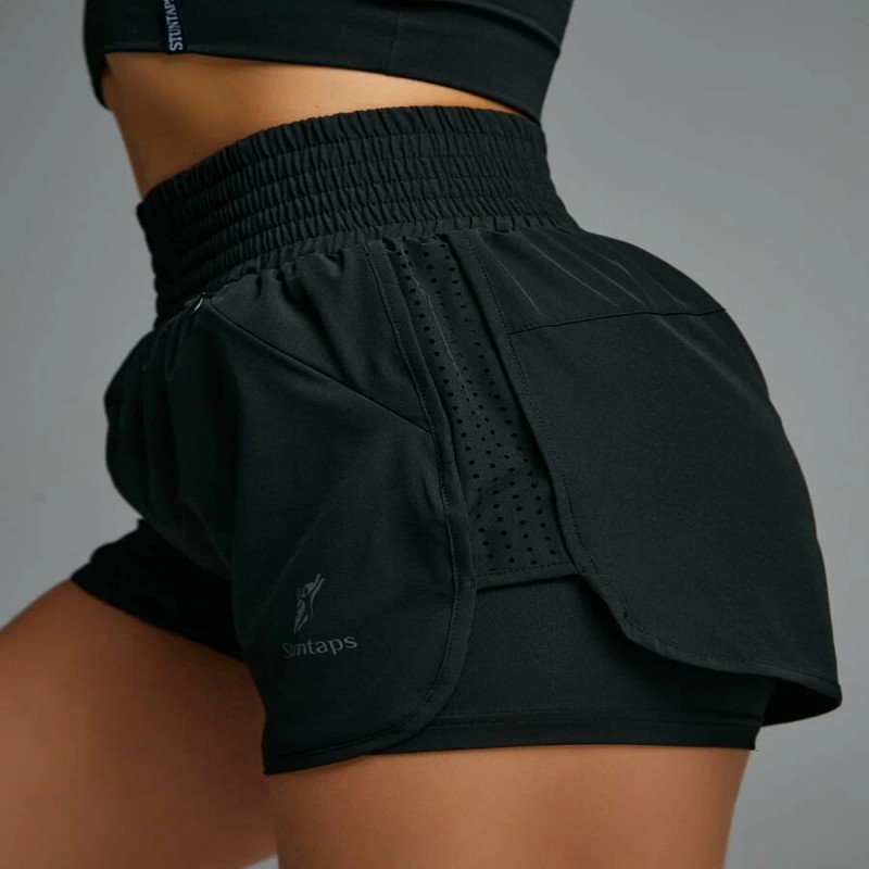 Эти шорты свободные, удобны и функциональны: двойные шортики с внутренними тайтсами обеспечивают уверенность и защиту во время активных занятий. Пояс фиксирует талию, а ткань быстро сохнет и не вызывает раздражения.