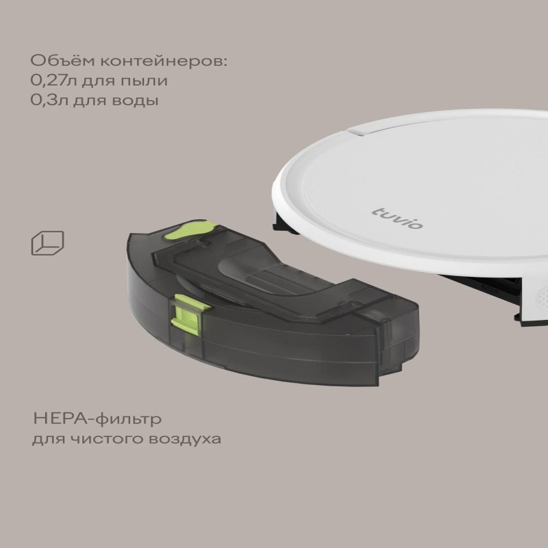 Tuvio TR01MGBW — это робот-пылесос с зарядной станцией. Поддерживает и сухую, и влажную уборку. Оснащён SLAM-навигацией и встроенным гироскопом: пылесос легко ориентируется в пространстве, распознаёт препятствия и отслеживает маршрут уборки.